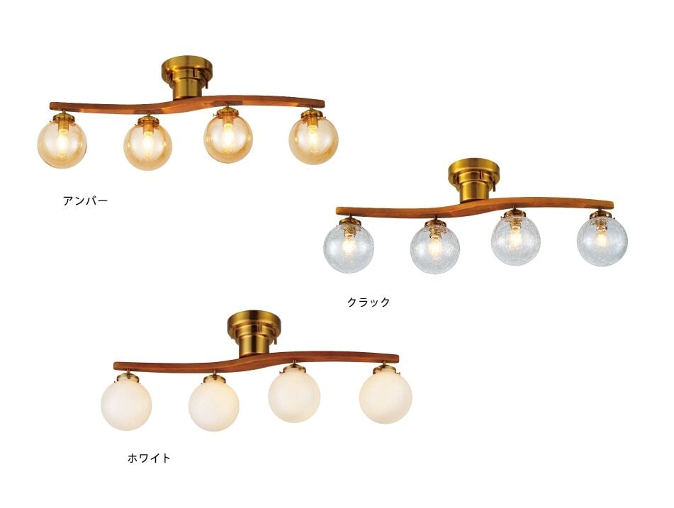 シーリングライト 照明 4灯 電球なし ウッド 木 レトロ アンティーク ガラス 天井照明 アンバー 韓国インテリア if-04025